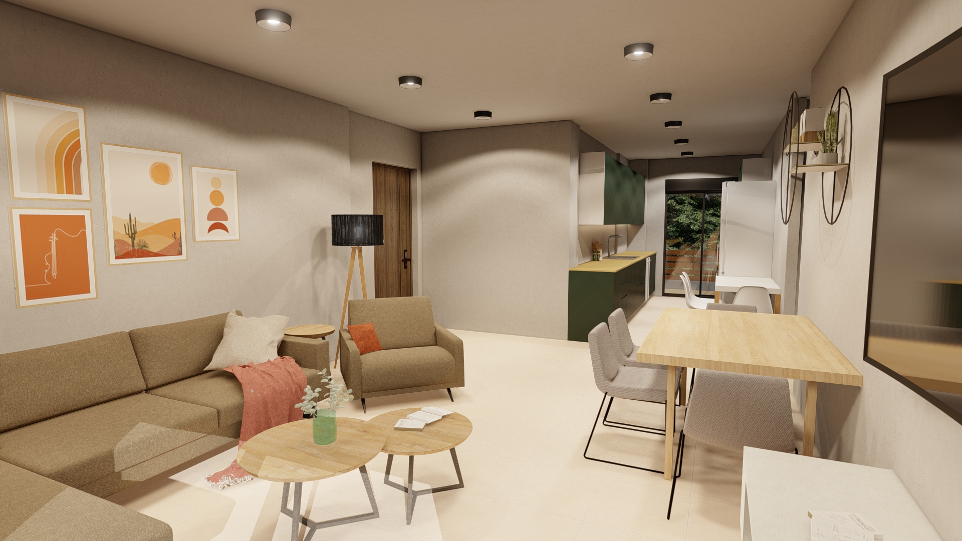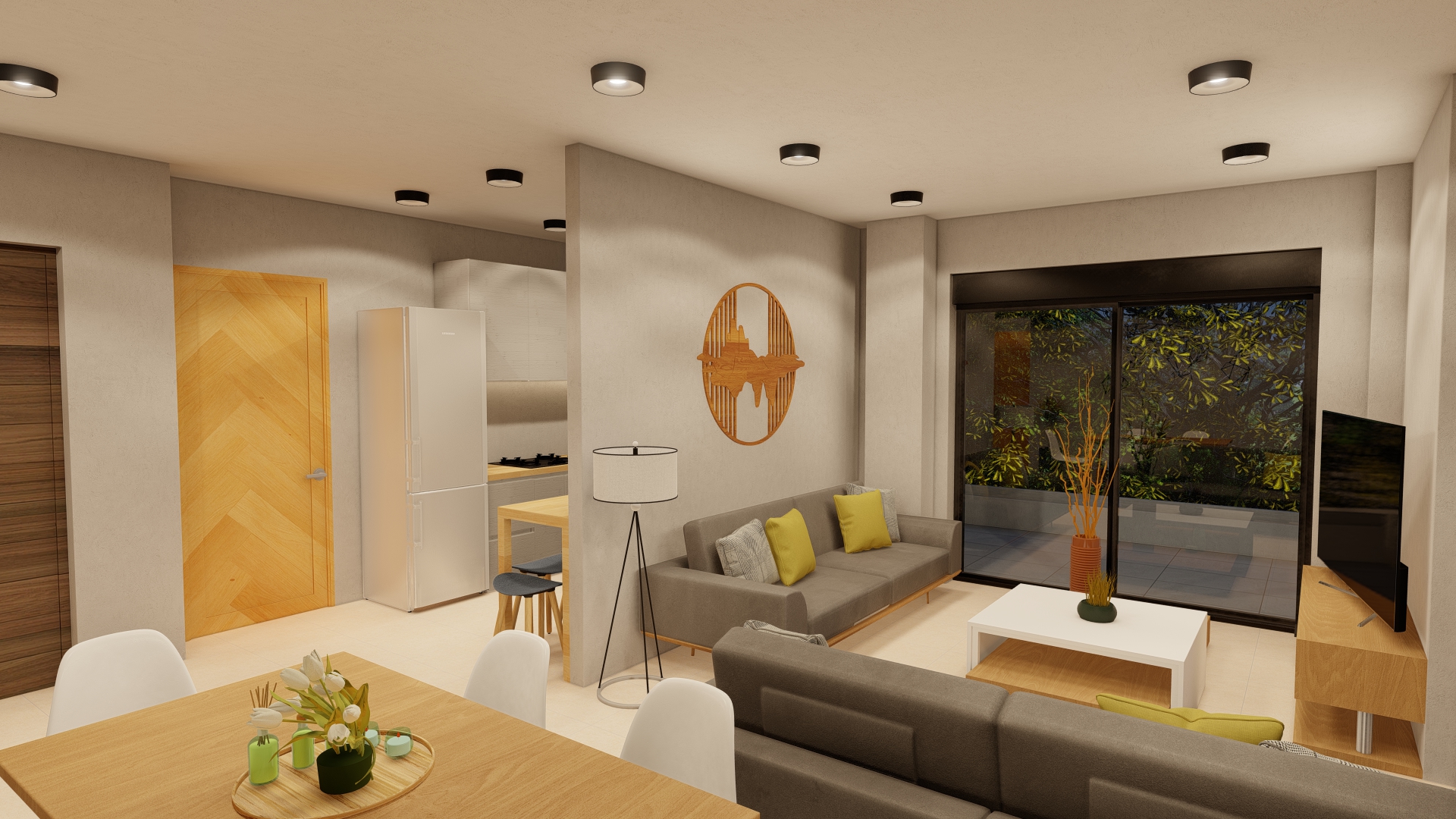 Στις εξωτερικές όψεις,τα υλικά που θα χρησιμοποιηθούν, θα συμβάλουν στο σύστημα εξωτερικής θερμομόνωσης καθώς και κάθε διαμέρισμα θα διαθέτει ηλιακό συλλέκτη αλλά και κουφώματα χαμηλής θερμοπερατότητας.