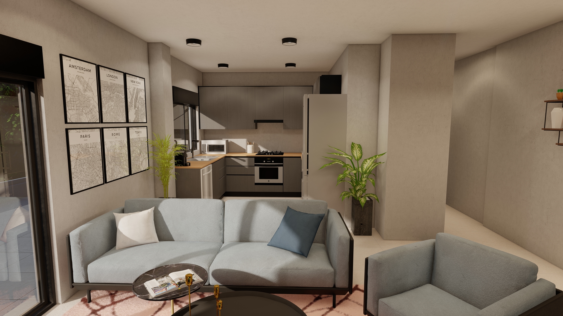 Έτσι,το κτίριο θα αποτελείται από δεκαπέντε διαμερίσματα που διαθέτουν όλα εξώστες και τοποθετούνται προς την πλευρά του δρόμου σε άμεση συσχέτιση με την ζωή της γειτονιάς. Επιπλέον ,οι χώροι του ύπνου τοποθετούνται προς τον ακάλυπτο χώρο ,δηλαδή προς την ήσυχη πλευρά του οικοπέδου. Η υποχώρηση του κτιρίου από την οικοδομική γραμμή δημιουργεί μία ουδέτερη ζώνη ανάμεσα στο κτίριο και το δημόσιο χώρο. Τέλος,η στάθμη του ισογείου θα χρησιμοποιηθεί ως χώρος θέσεων στάθμευσης ενώ στο υπόγειο θα αναπτύσσονται βοηθητικοί χώροι και κλειστοί χώροι στάθμευσης με σκοπό κάθε ένοικος να διαθέτει την δική του θέση στάθμευσης και αποθήκη.